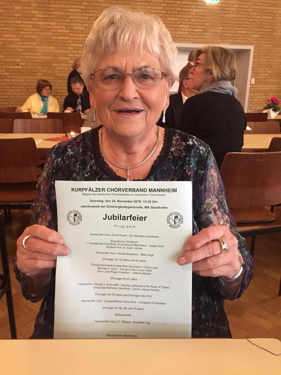 Beim Ehrungsnachmittag des Kurpfälzer Chorverband Mannheim wurden Vera Hildebrand für 25 Sängerinnenjahre und